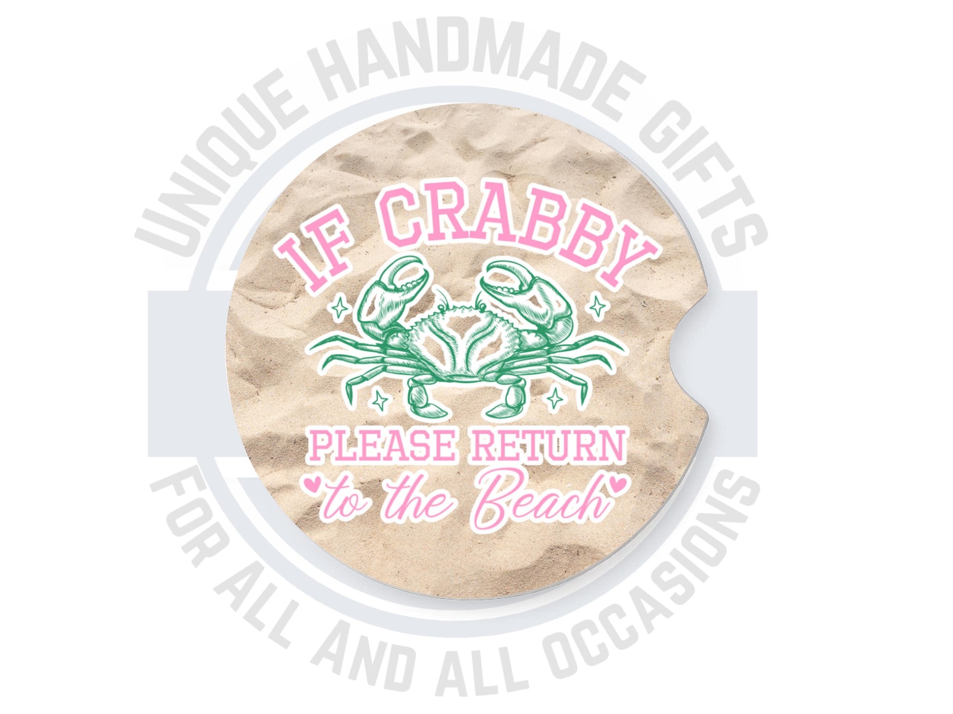Add a touch of beach-inspired charm to your vehicle with these delightful sandstone car coasters. Measuring 2.56 inches in diameter and 0.30 inches thick, you can choose between a single coaster or a set of two. Each coaster features a whimsical crab quote, "If crabby, please return to the beach," beautifully set against a soothing sand background. These coasters are not only perfect for keeping your cup holders clean but also add a stylish flair to your drives.