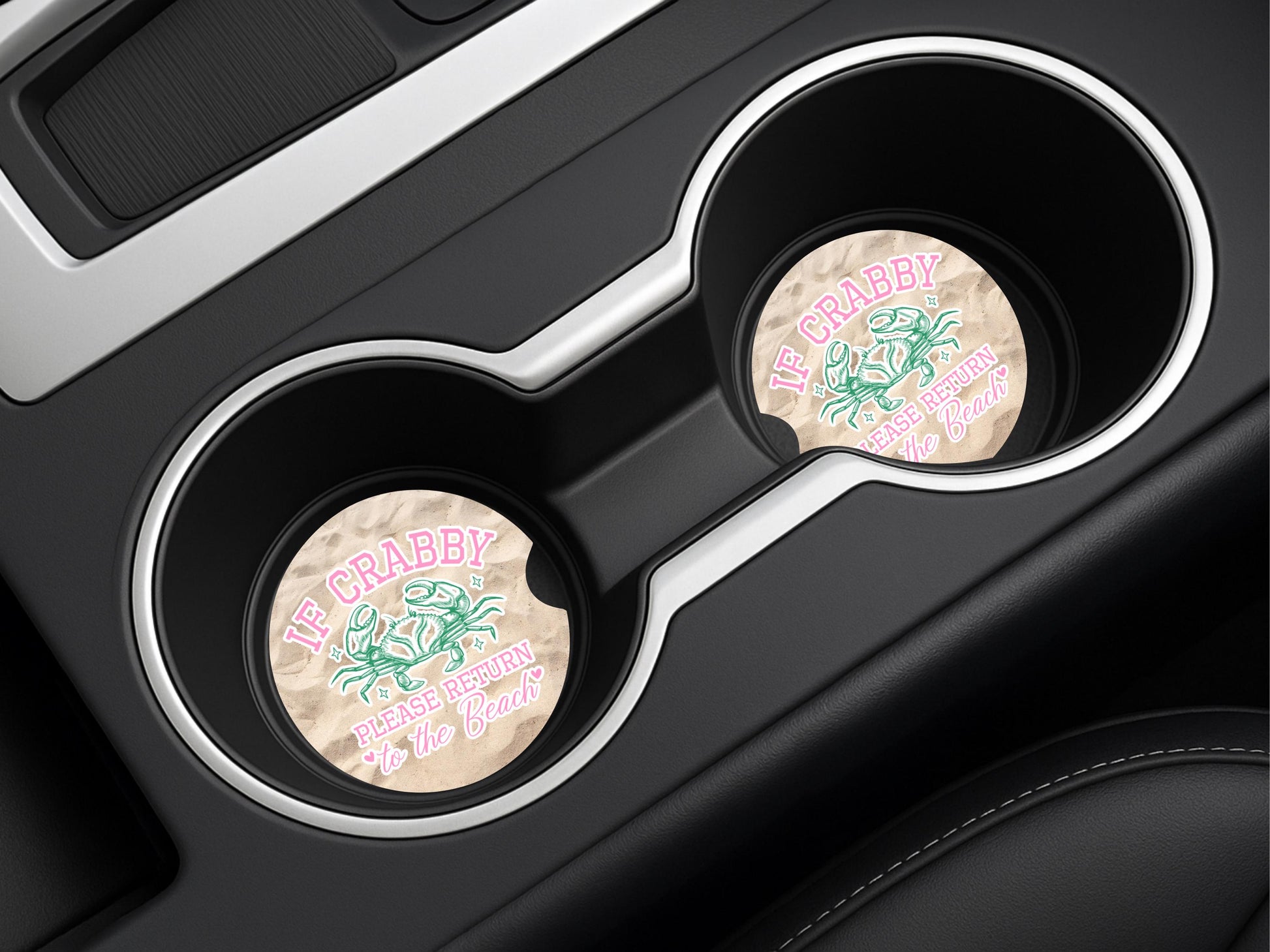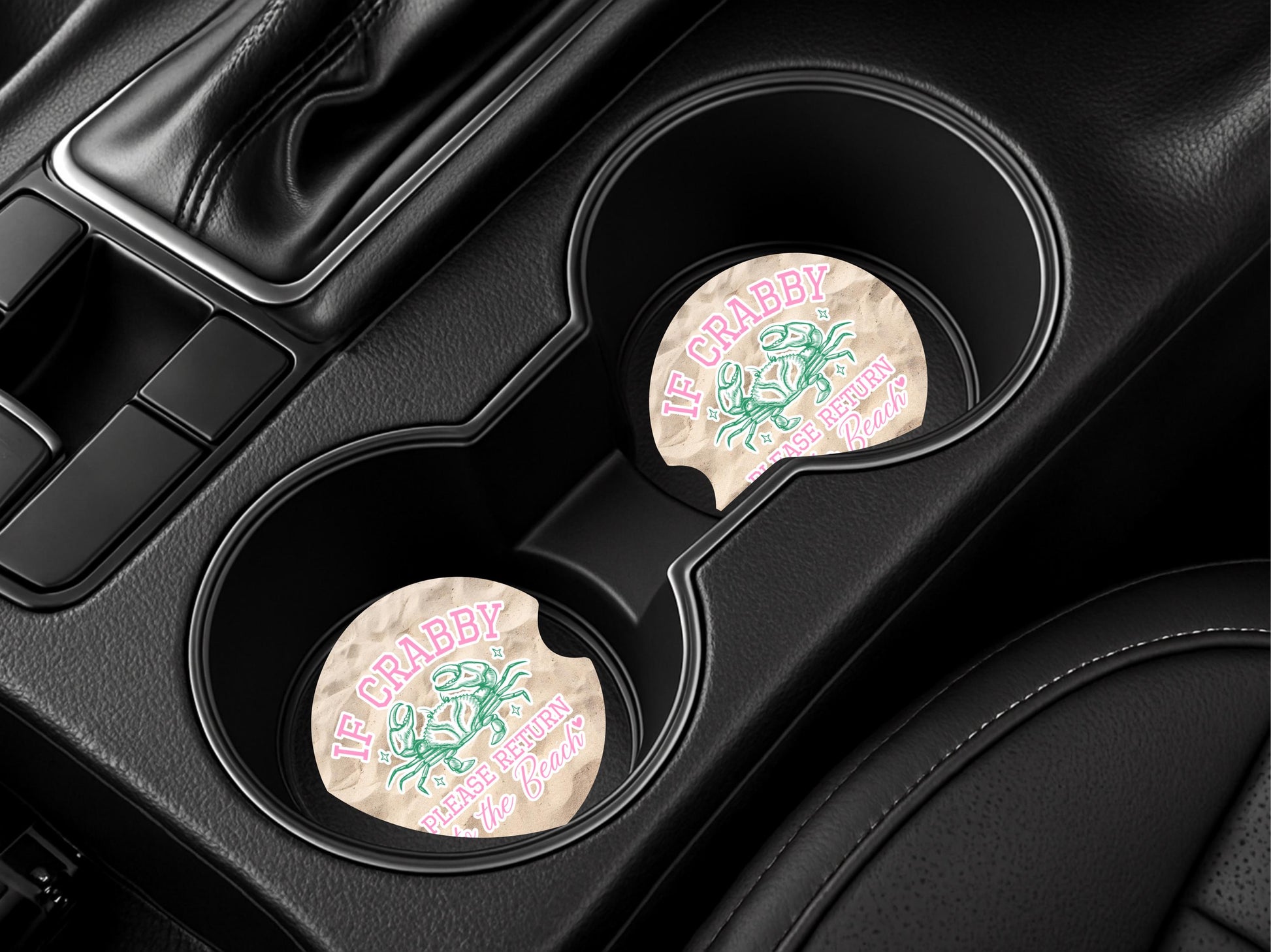 Sandstone Car Coasters with Crab Quote - Beach-Themed Cup Holder Accessories