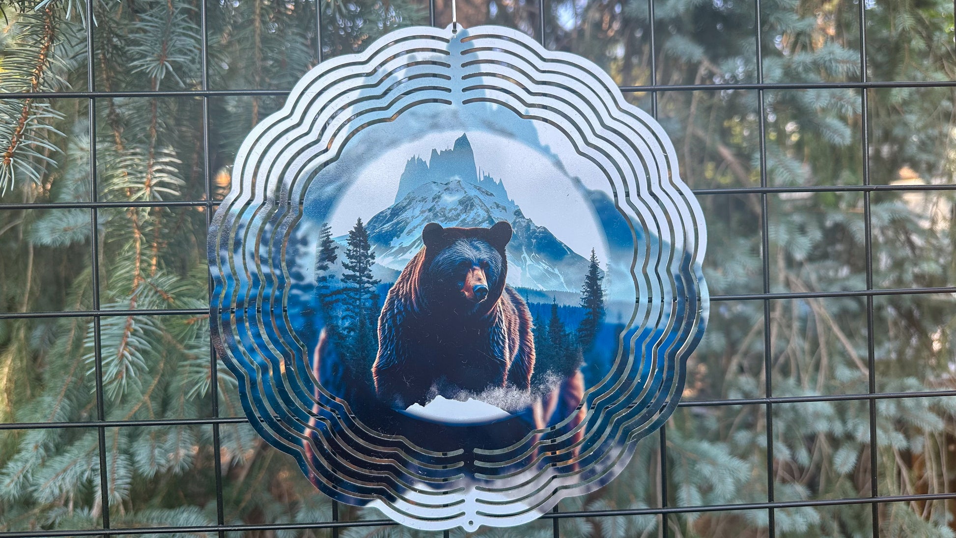 3D Bear in the Mountains Wind Spinner - 10-Inch Outdoor Decor