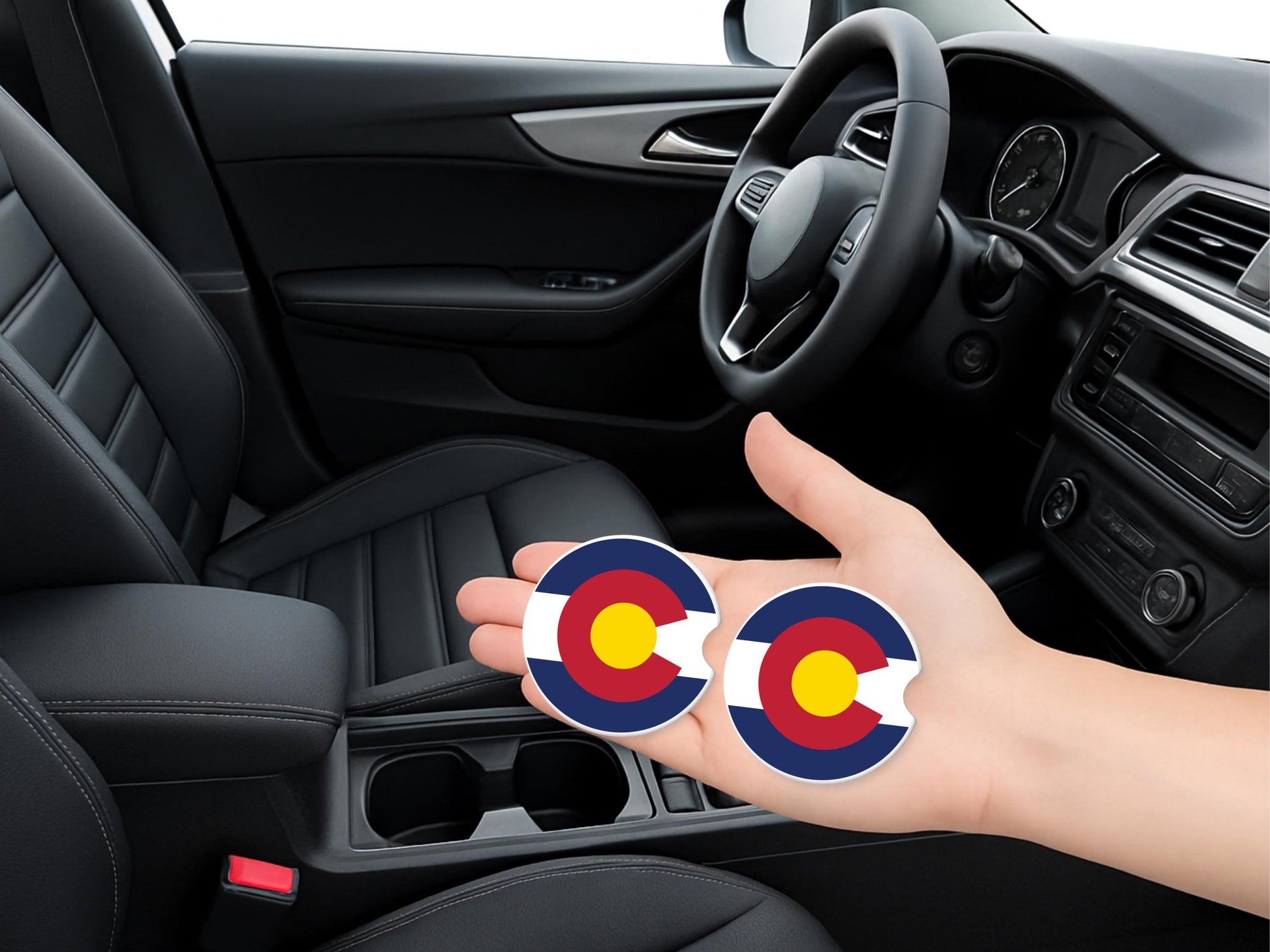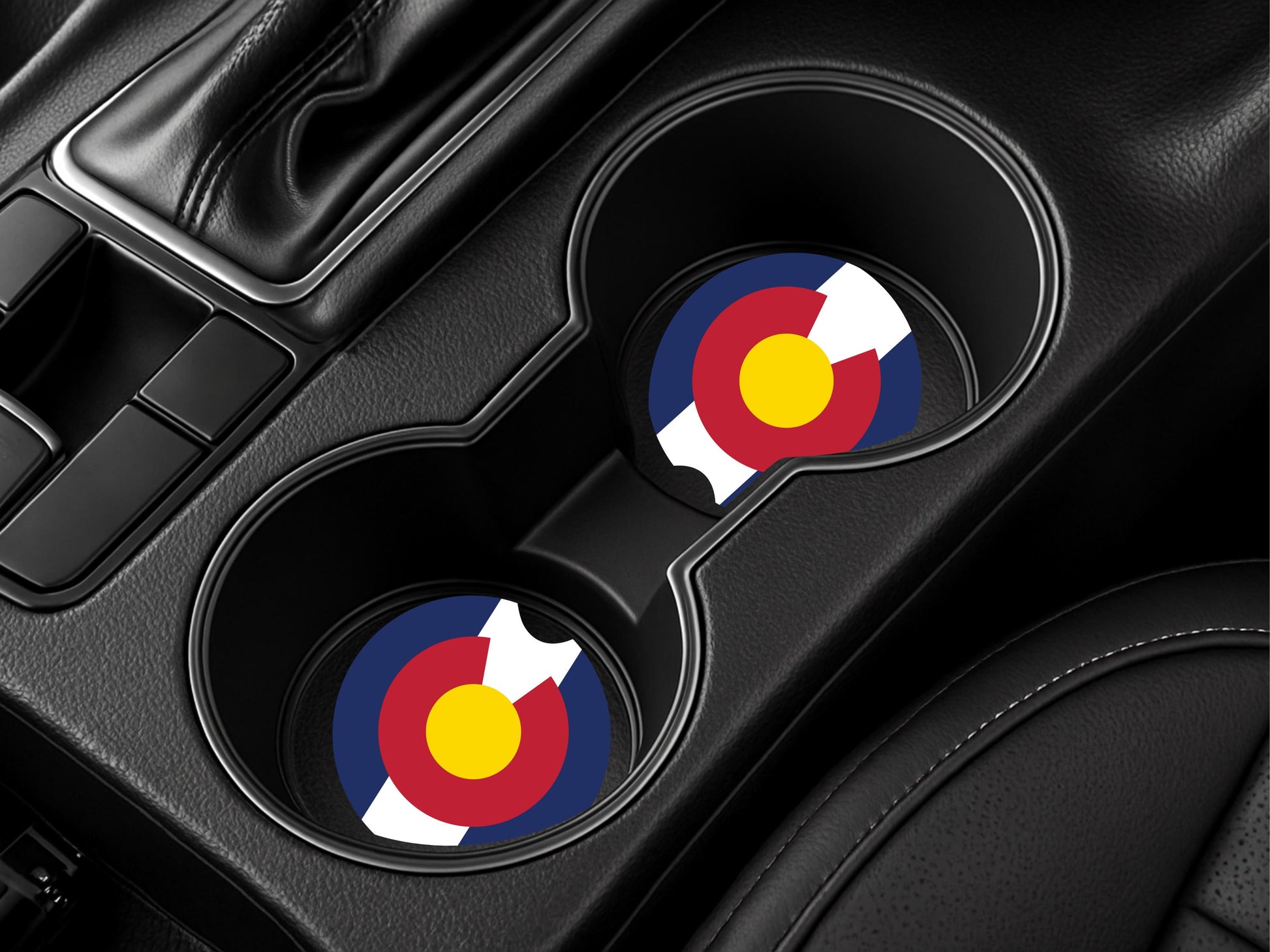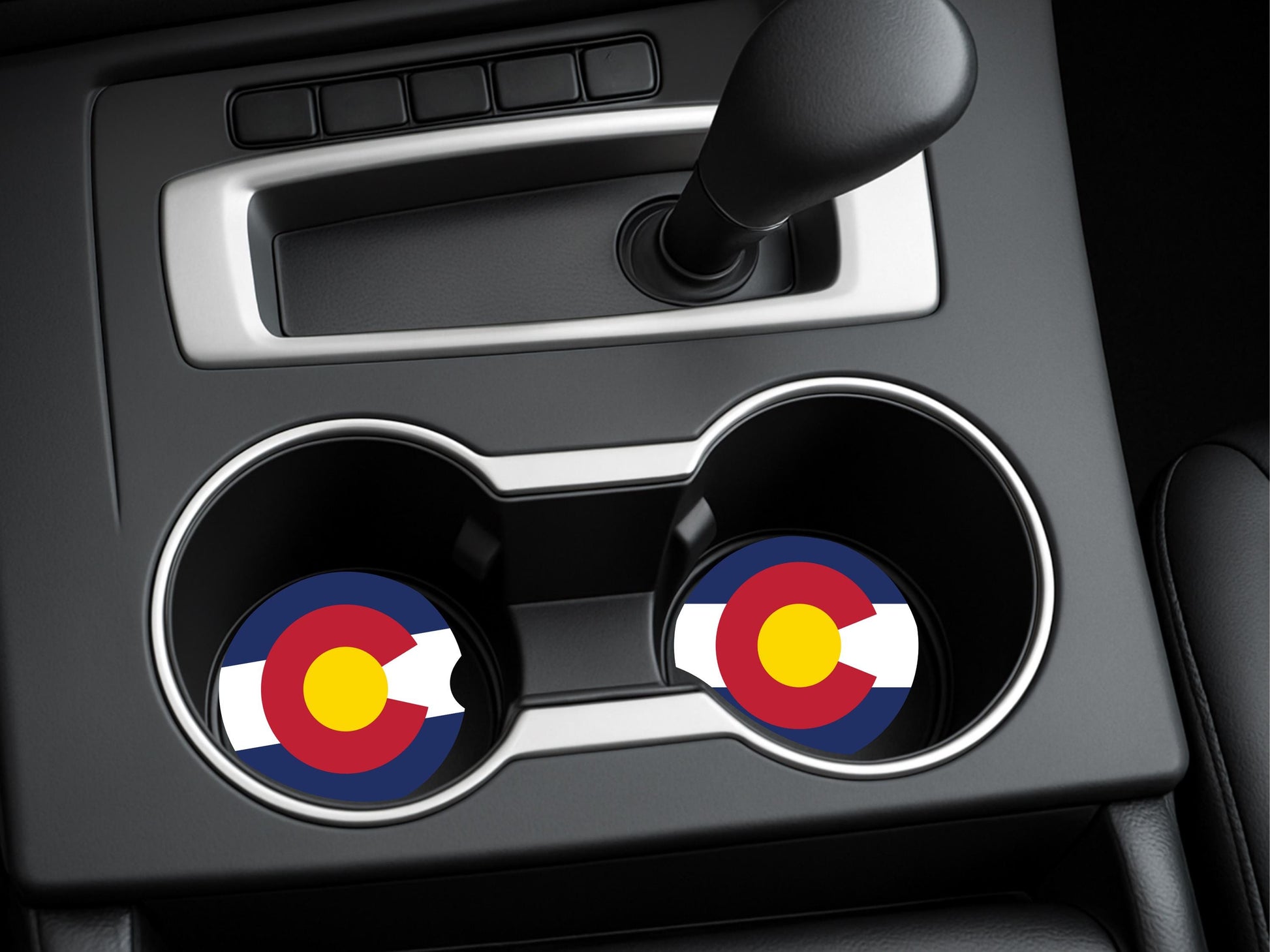 Colorado Circle Logo Sandstone Car Coasters, Unique Gifts for Him, Car Cup Holder