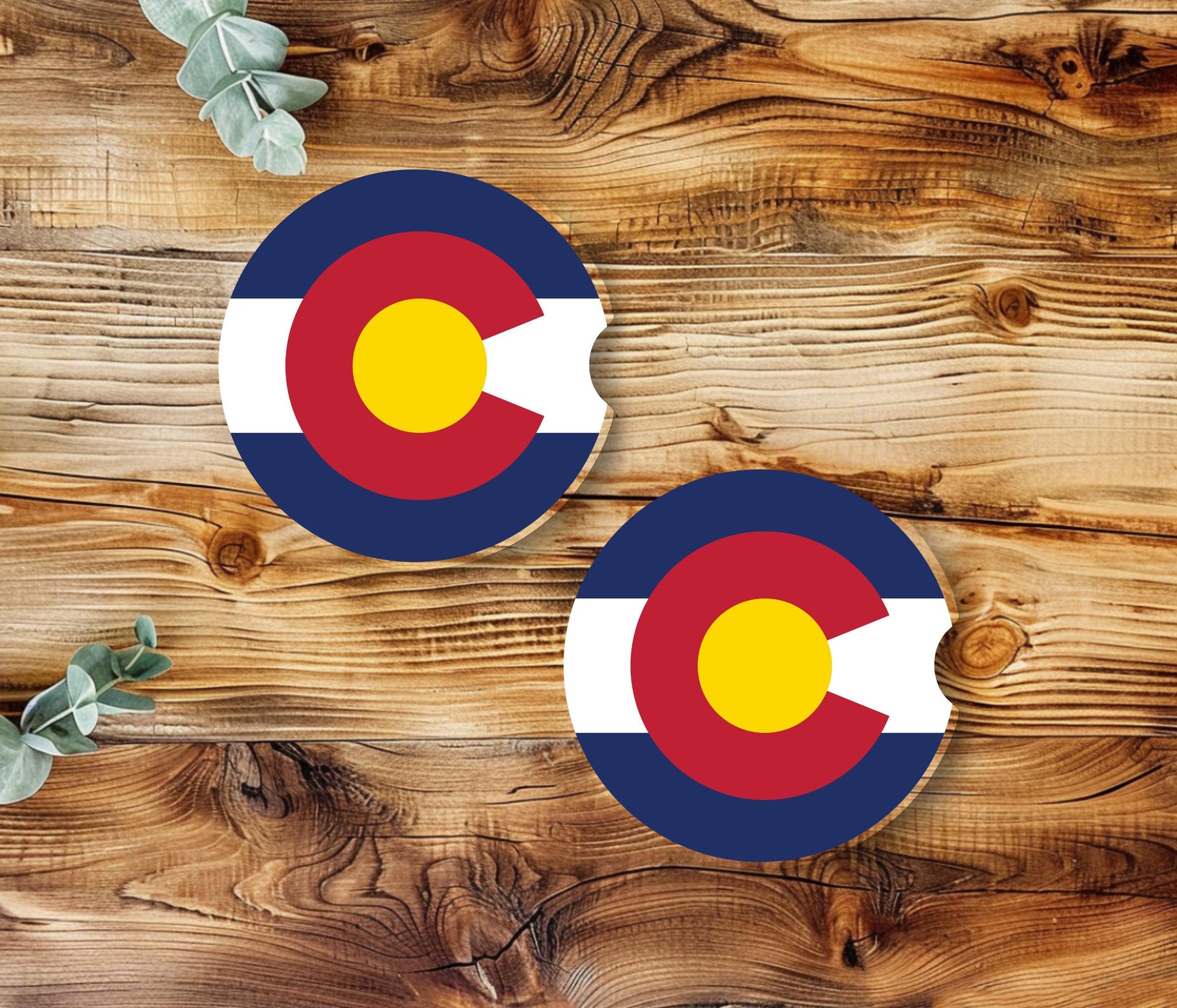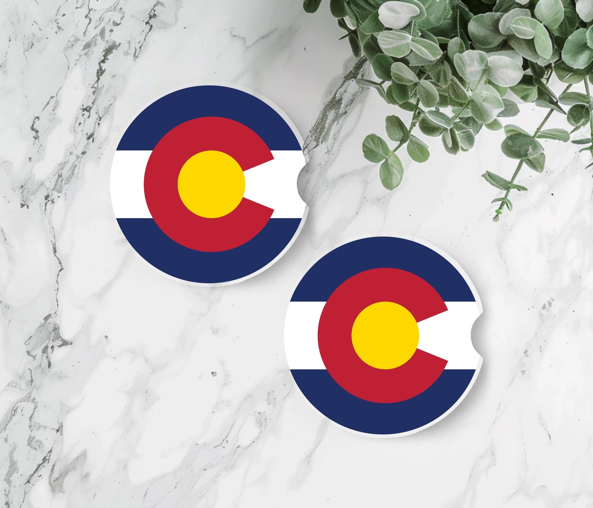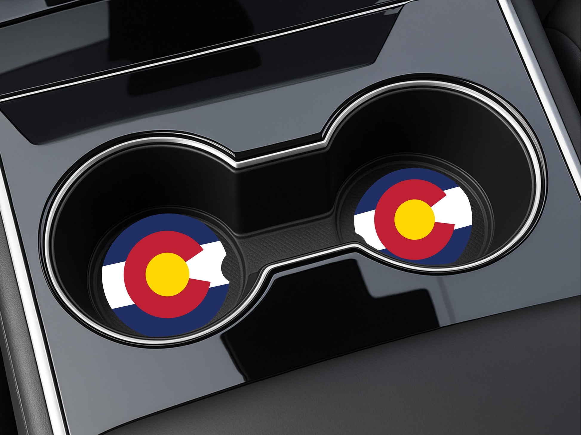 Colorado Circle Logo Sandstone Car Coasters, Unique Gifts for Him, Car Cup Holder