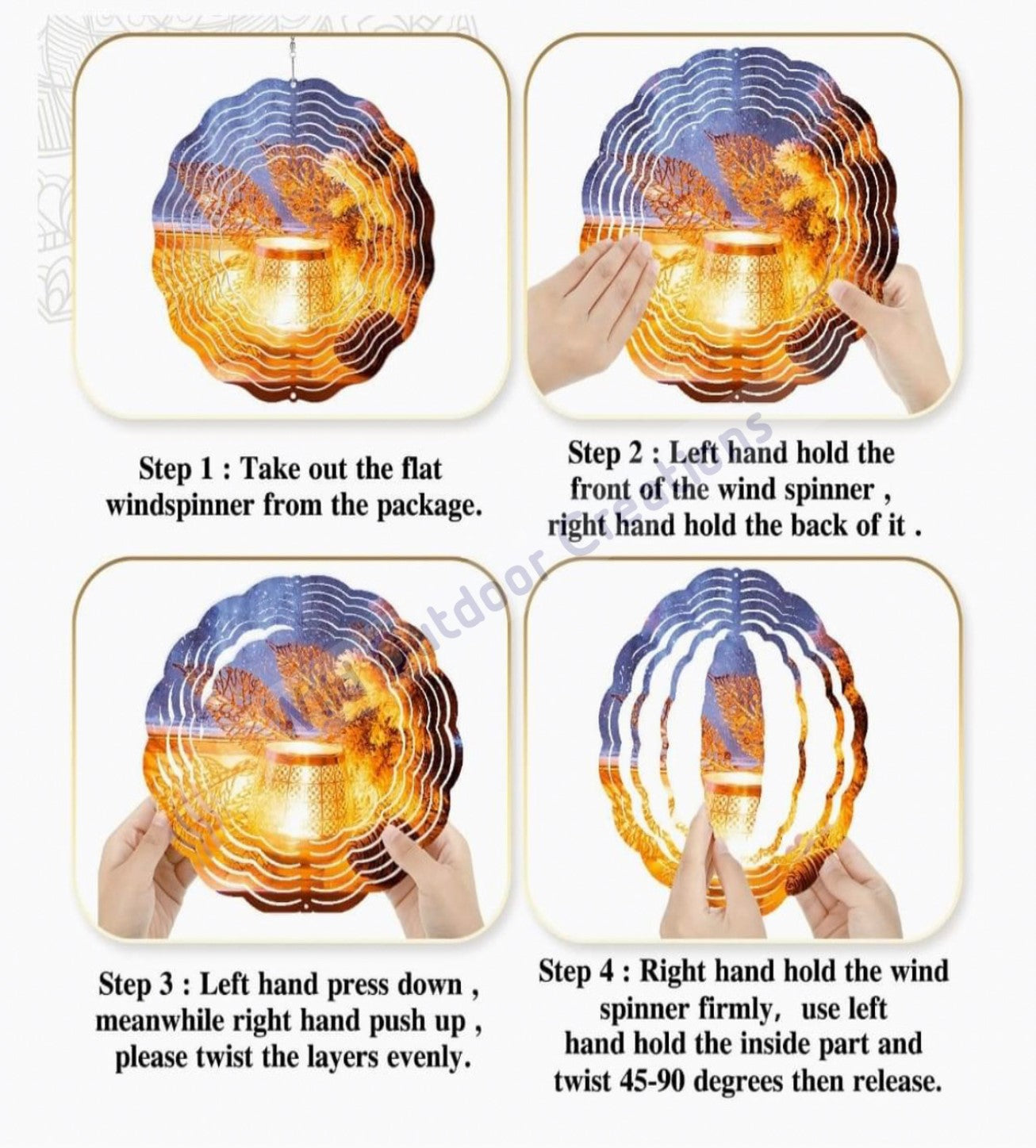 For your convenience, the wind spinner is shipped flat and carefully wrapped in bubble wrap, accompanied by instructions on how to fan out the spinner for optimal display.