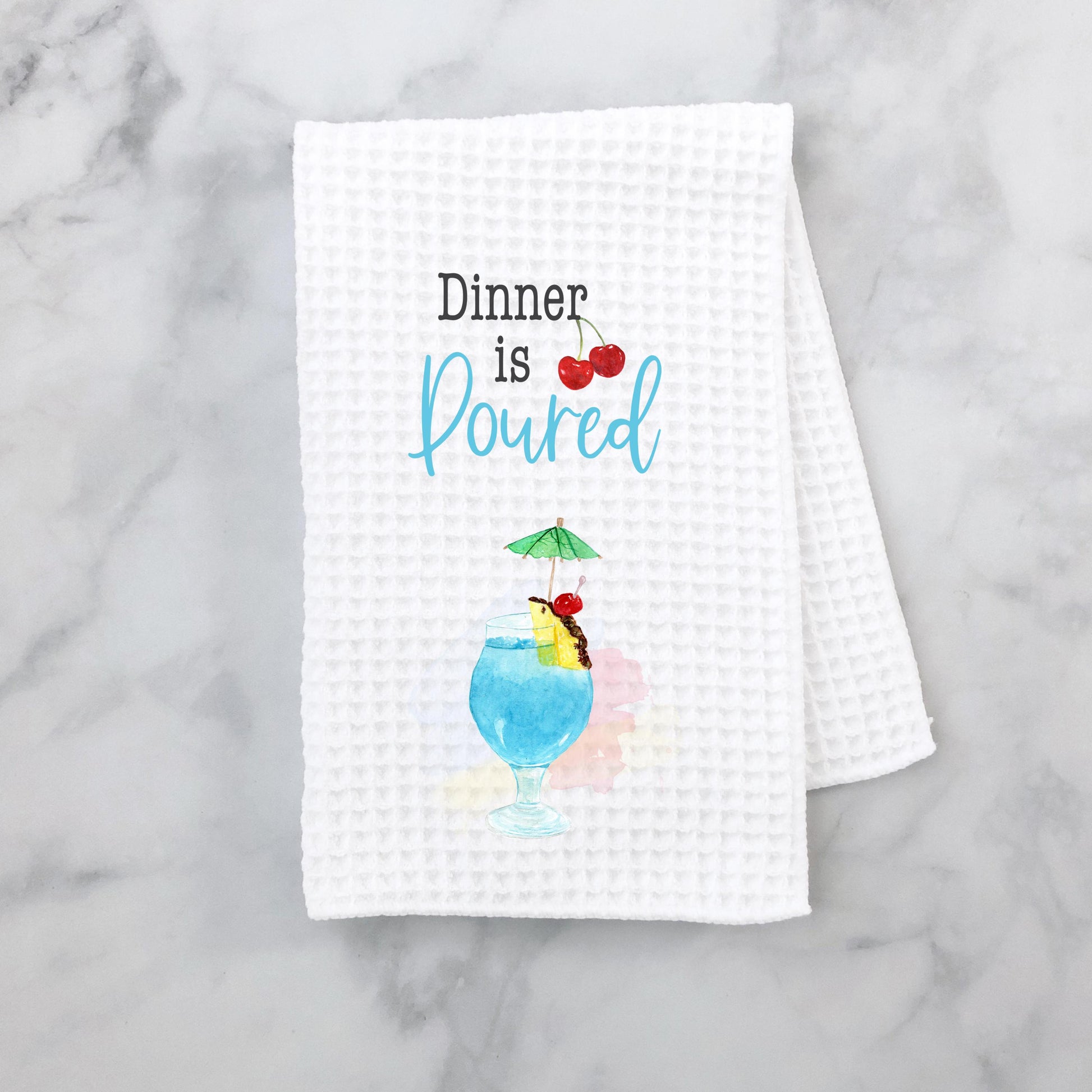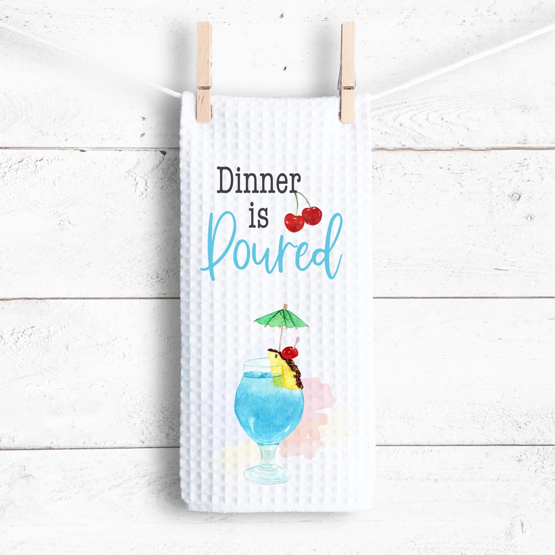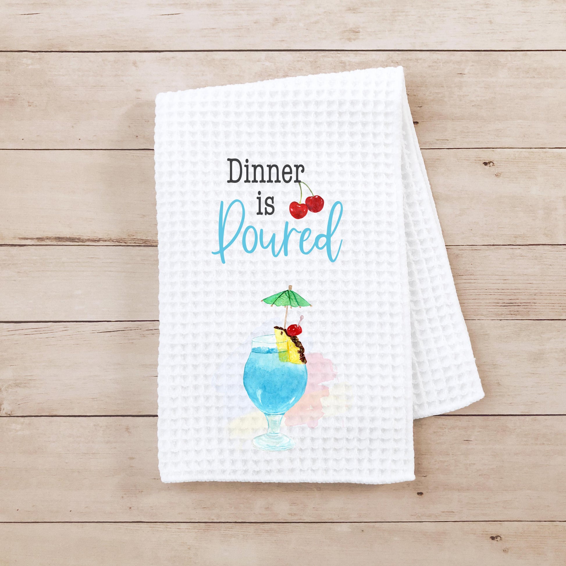 Funny Kitchen Towel - Dinner is Poured - Unique Gift for Sisters Drink Lovers Perfect for Summer Vibes