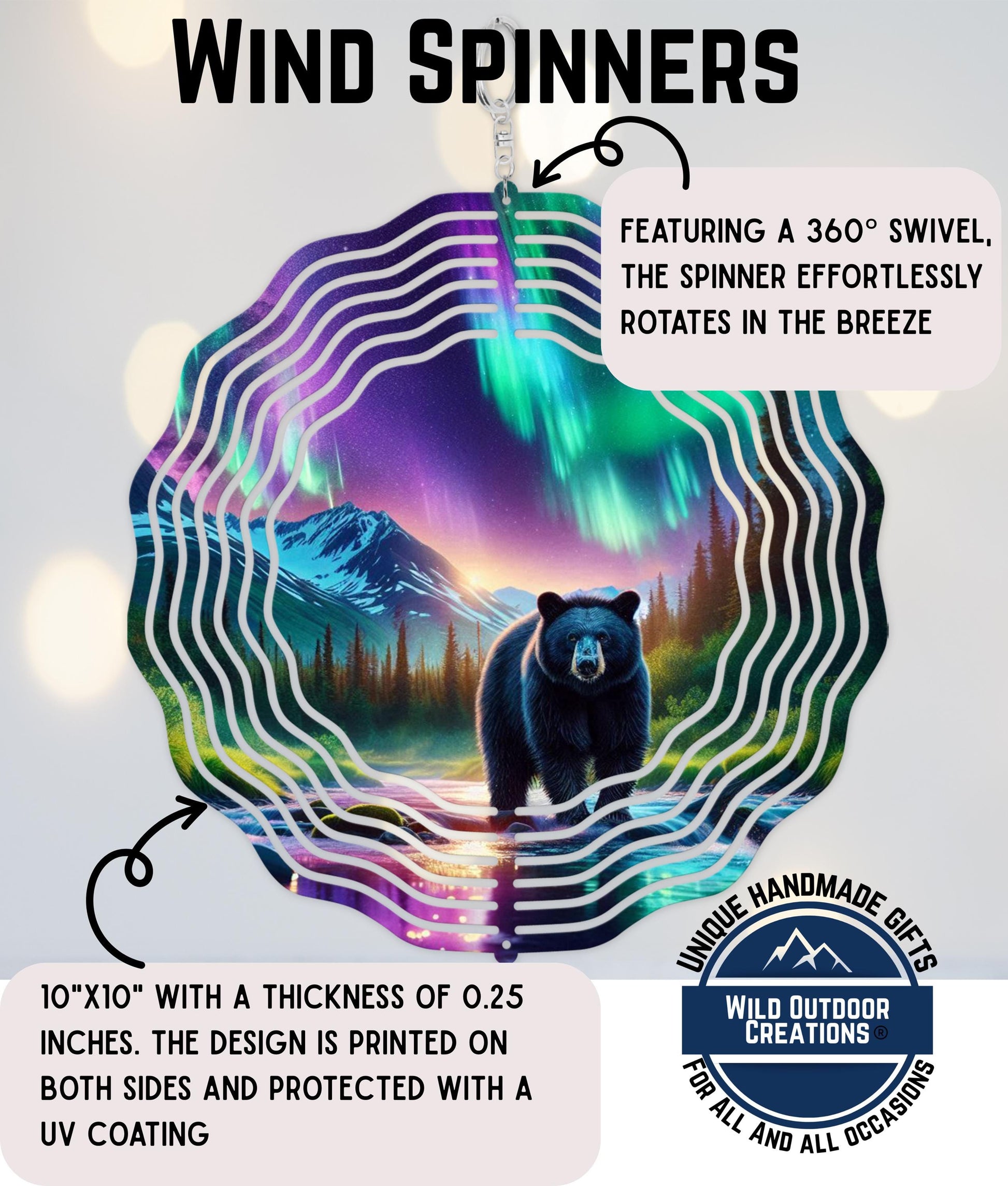 Crafted with a durable UV coating, this wind spinner is designed to withstand the elements while maintaining its vibrant appearance. The included 360° swivel hook allows for effortless rotation in the breeze, making it an ideal addition to outdoor patios, woodland-themed interiors, or cozy cabin corners.