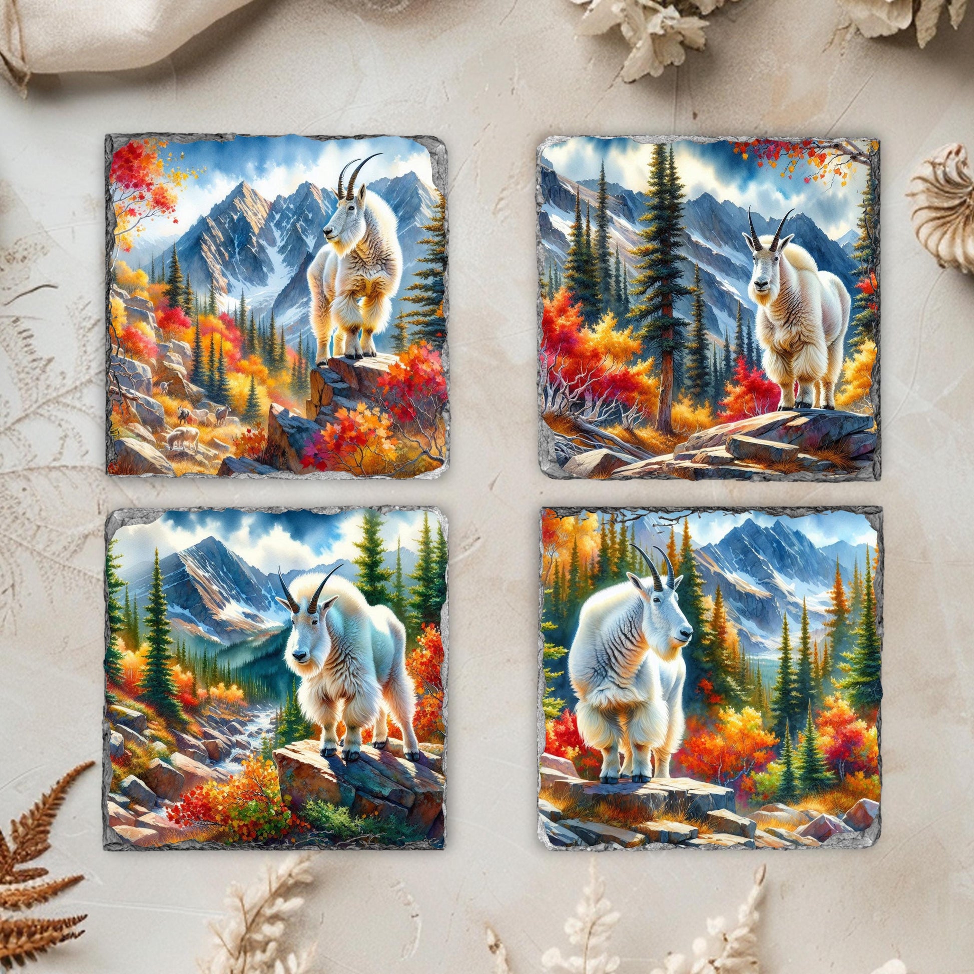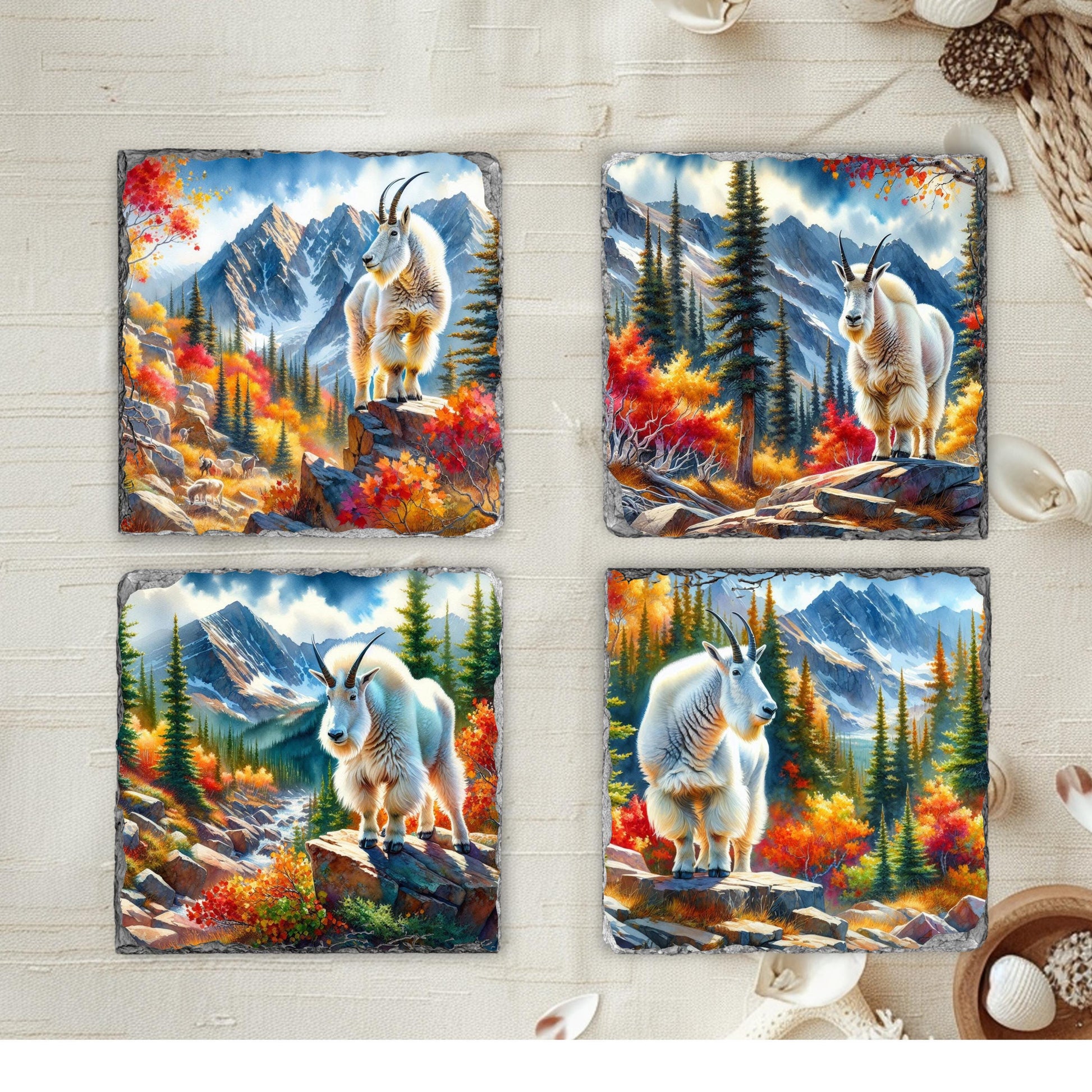 Handcrafted Slate Coaster Set with Fall Mountain Goat Designs - Perfect Gift for Nature Lovers