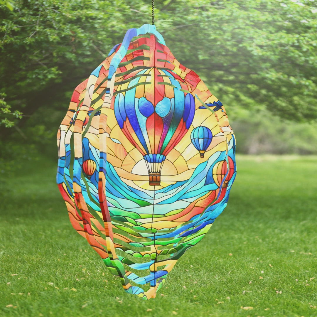 Hot Air Balloon Wind Spinner - Stained Glass 3D Metal Decor for Porch Unique Mothers Day Gift
