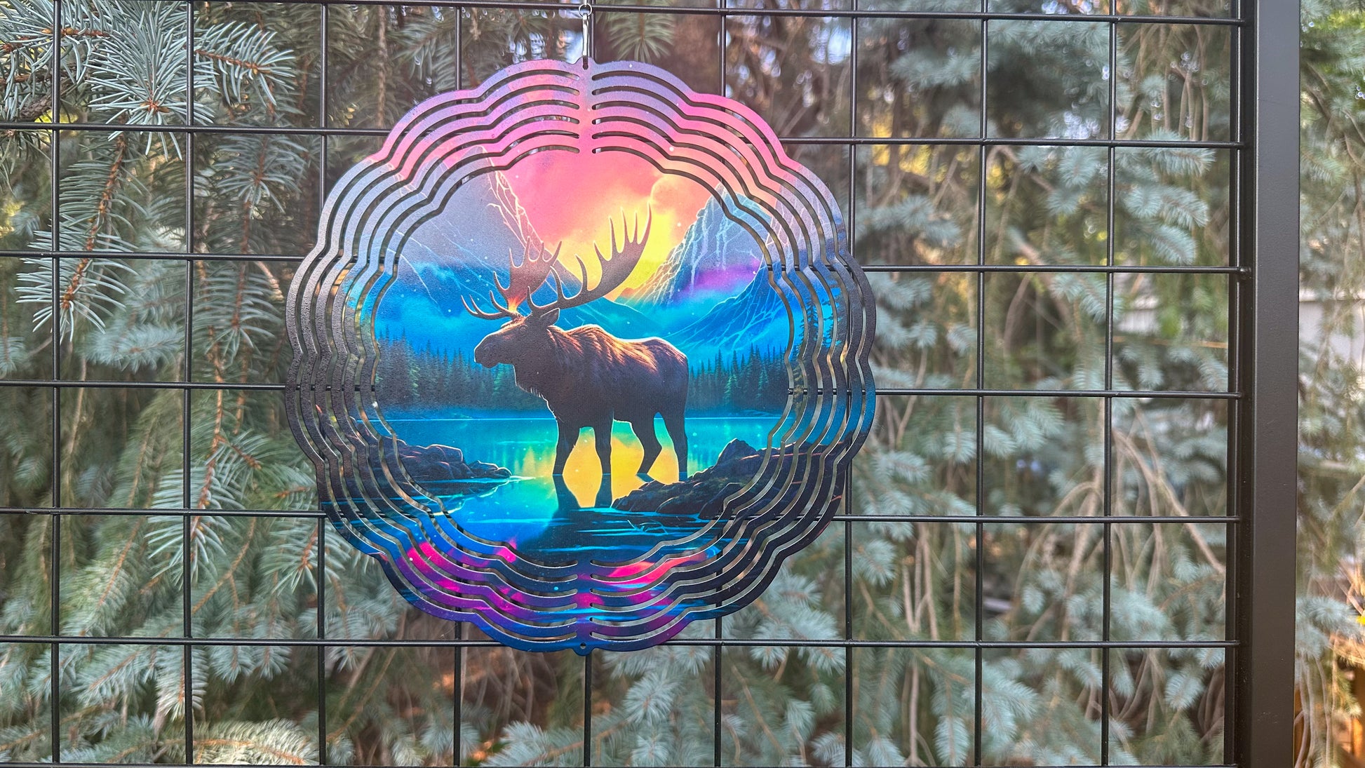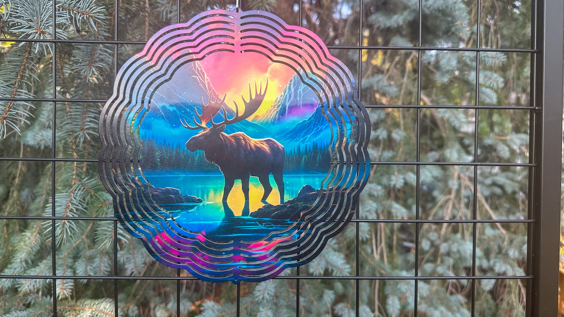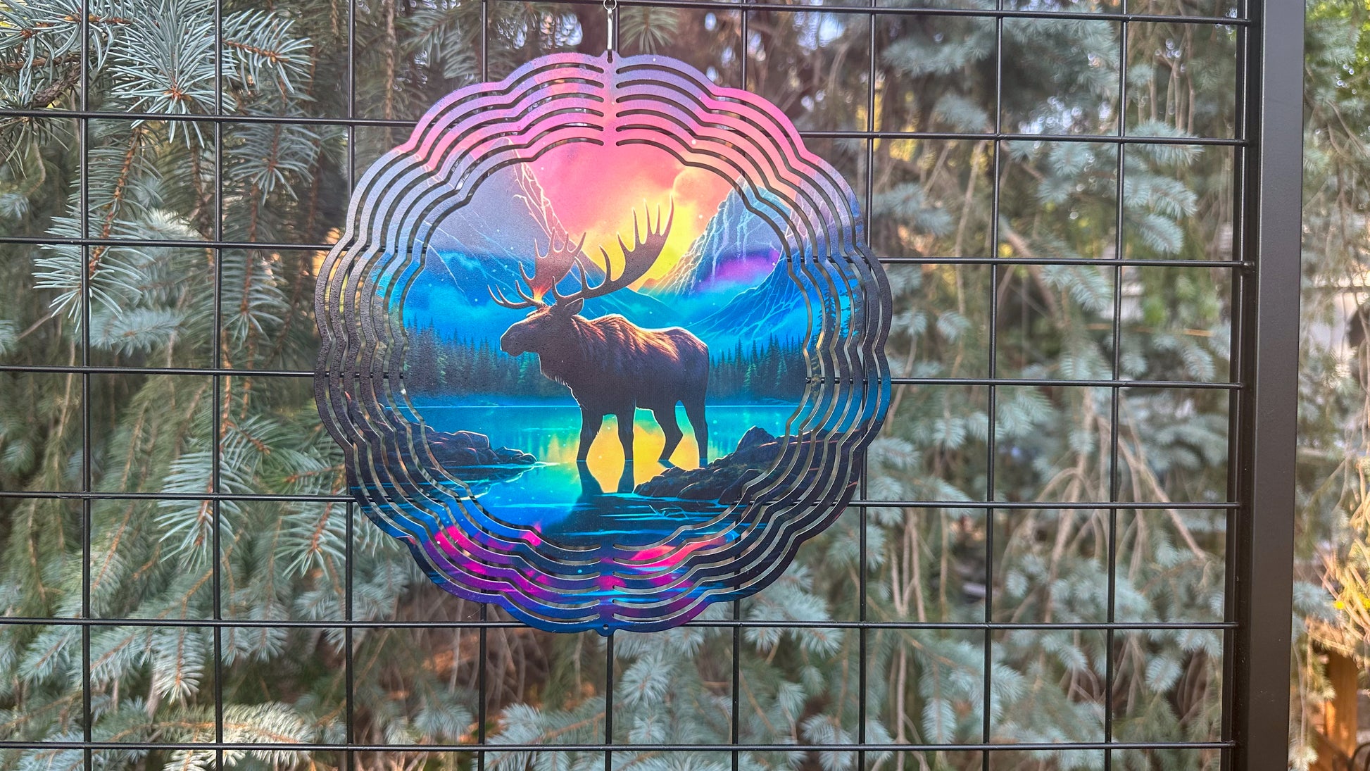 3D Moose Northern Lights Wind Spinner - 10-inch Decorative Garden Spinner
