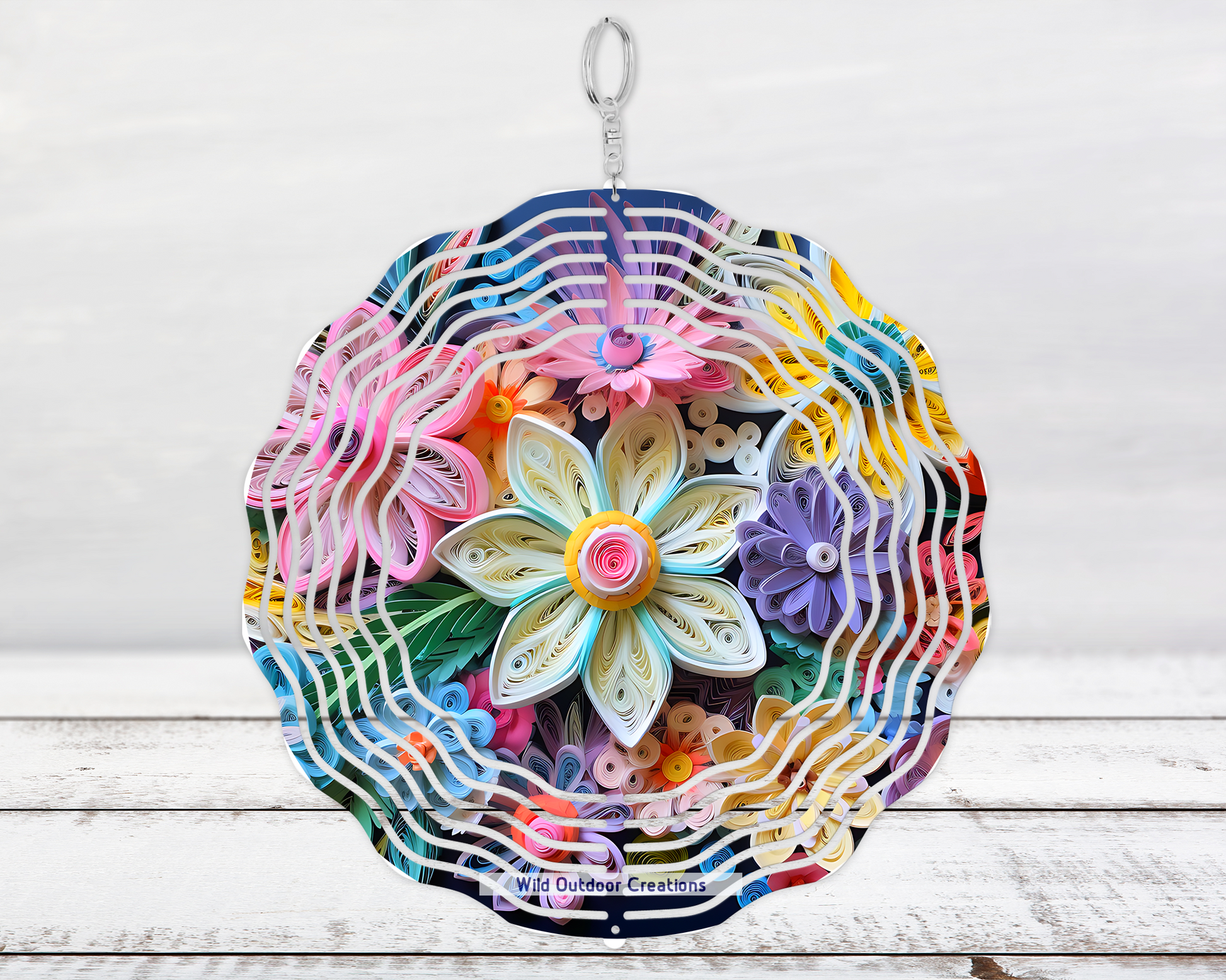 Elevate your outdoor space with this unique 3D pastel floral wind spinner, a thoughtful gift for her. Measuring 10 inches by 10 inches and 0.25 inches thick, this wind spinner is crafted from durable aluminum, ensuring it can withstand the elements.