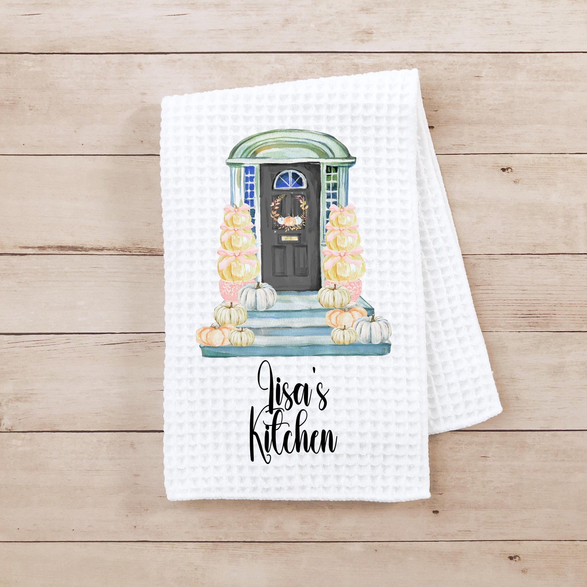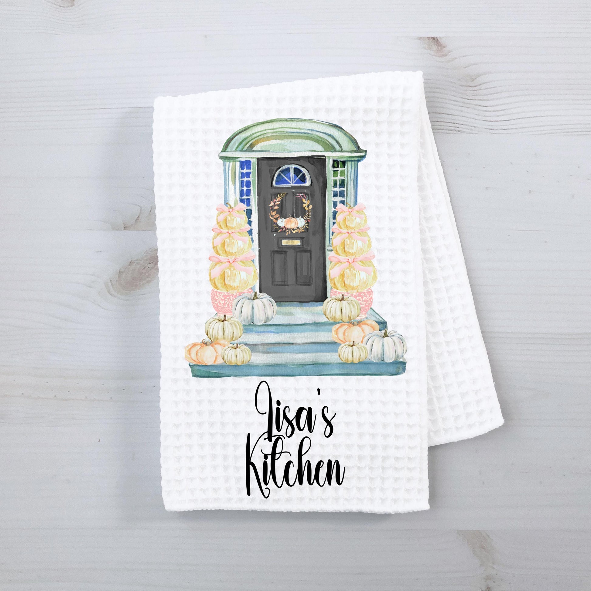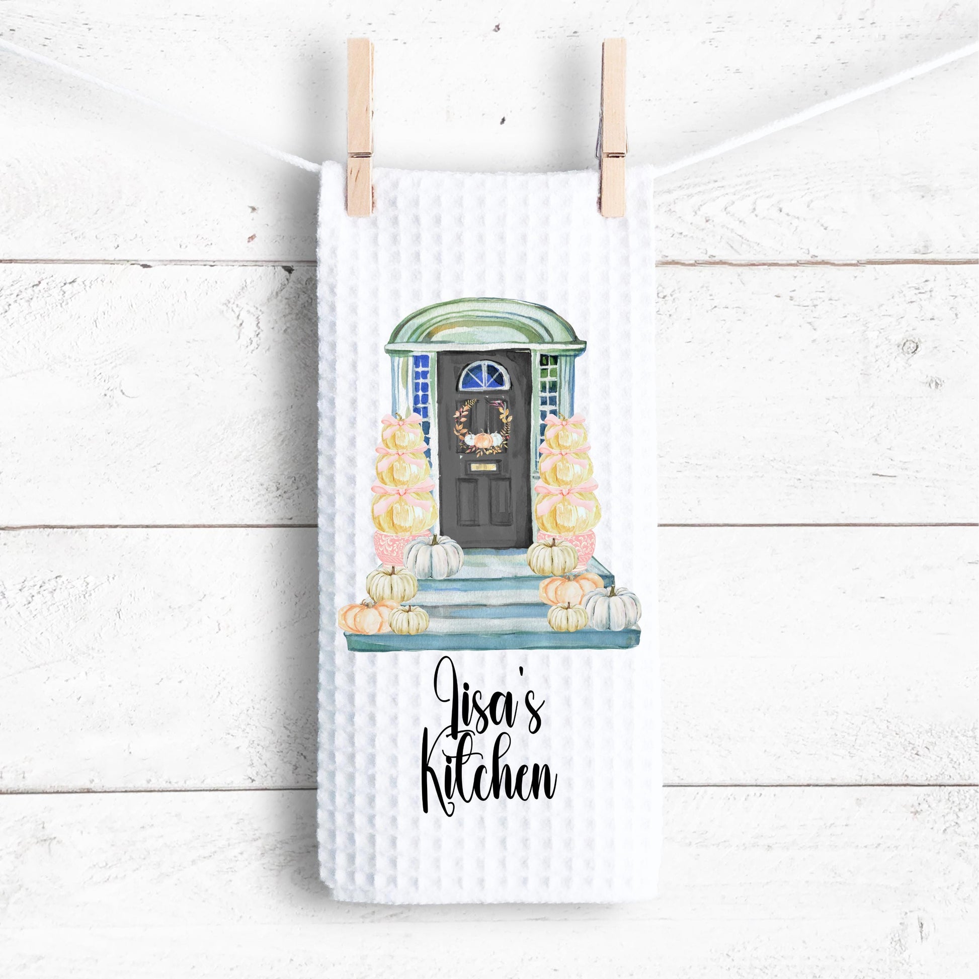 Personalized Fall Front Door Towel with Autumn Porch Scene - Perfect Thanksgiving Hostess Gift