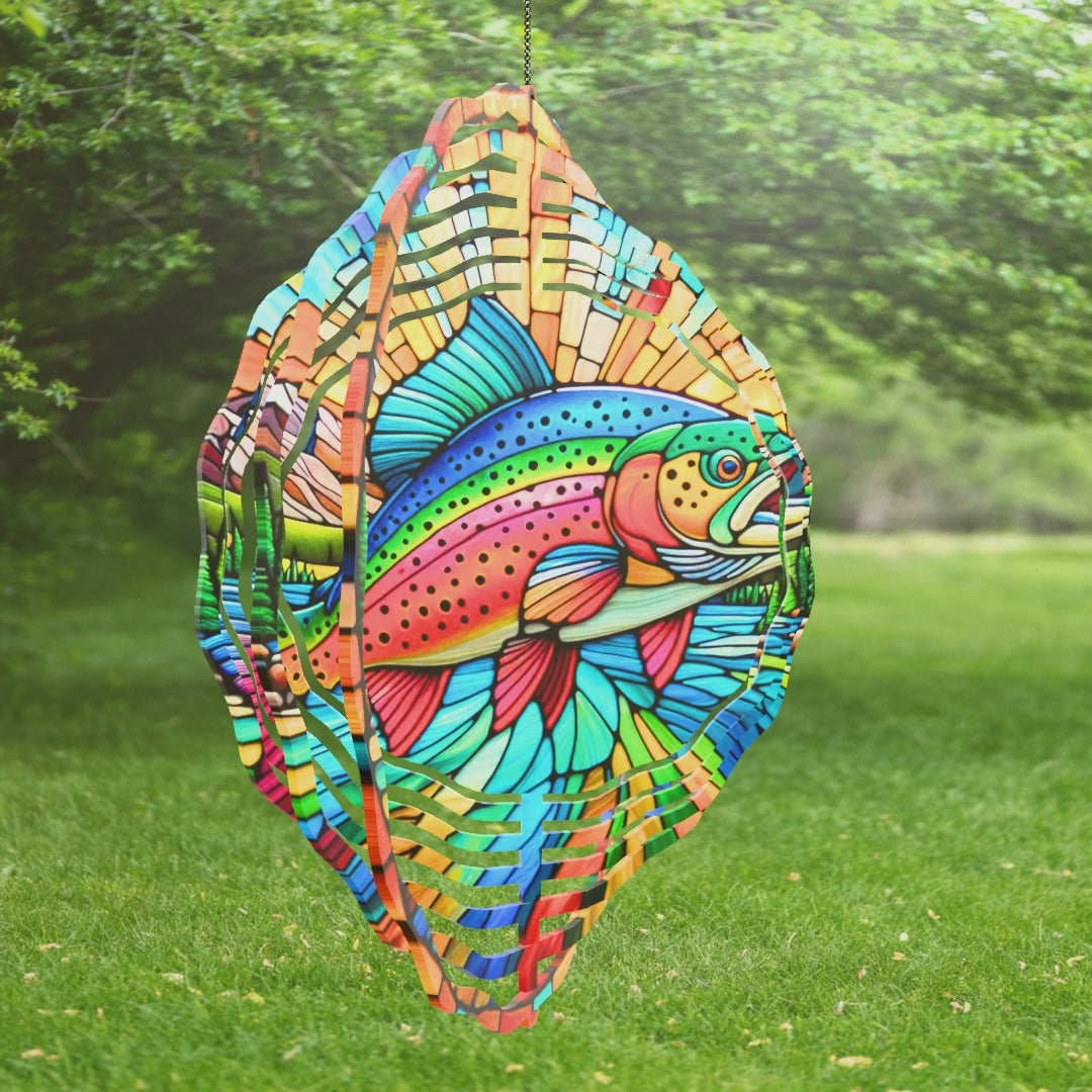 Rainbow Trout Wind Spinner - Unique Fathers Day Gift for Porch Garden Decor Nature-Inspired Housewarming Present