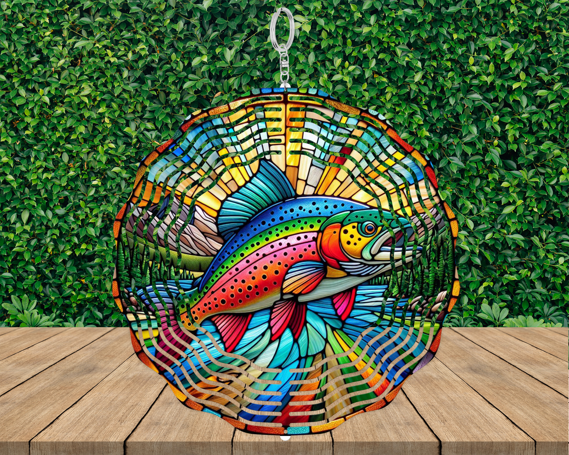 Experience the beauty of nature with our vibrant Rainbow Trout Wind Spinner, featuring a stunning faux stained-glass design that showcases a colorful backdrop of mountains and rivers. This unique piece makes a thoughtful gift for nature enthusiasts, Colorado lovers, Father's Day celebrations, birthdays, or as a charming housewarming present.