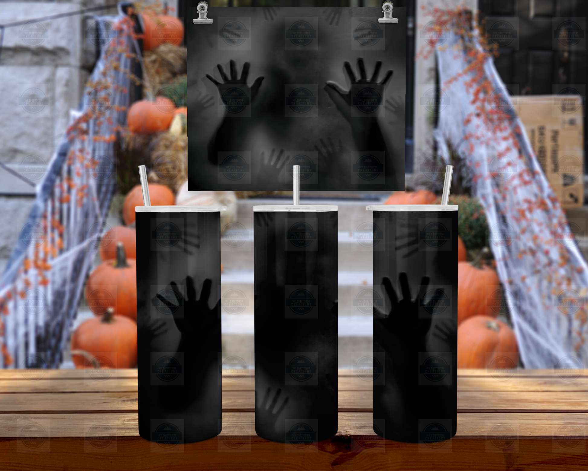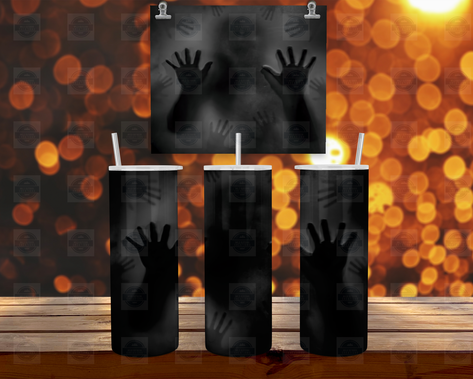 Embrace the spirit of Halloween with our Glow-in-the-Dark Ghost Tumbler, perfect for enjoying your favorite beverages in a spooky style. This unique tumbler features ghostly hands and a haunting silhouette of a woman, capturing the essence of the season.
