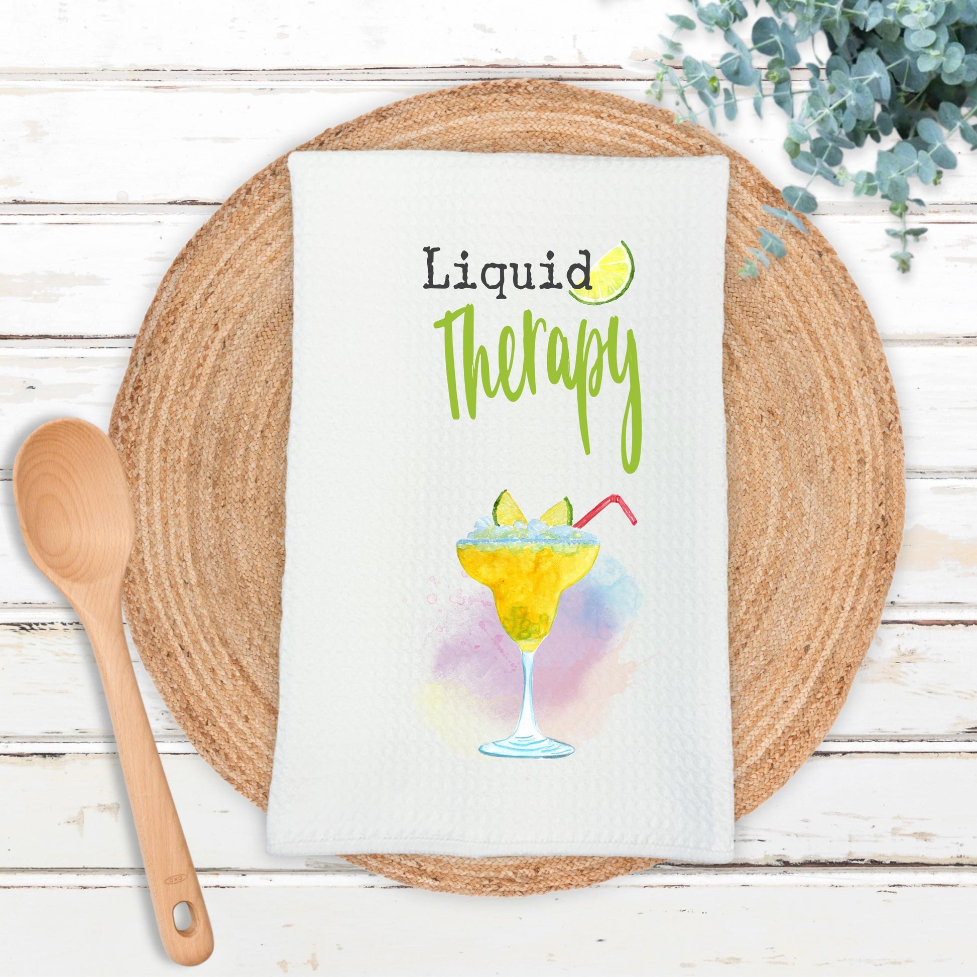 Introduce a touch of fun and relaxation to your kitchen with our Liquid Therapy Waffle Weave Towel. Measuring 16"x24", this delightful towel showcases a whimsical margarita glass design, complete with lime, salt, and a straw, accompanied by the playful phrase "Liquid Therapy." It's an ideal way to add a hint of charm to your daily kitchen routine.