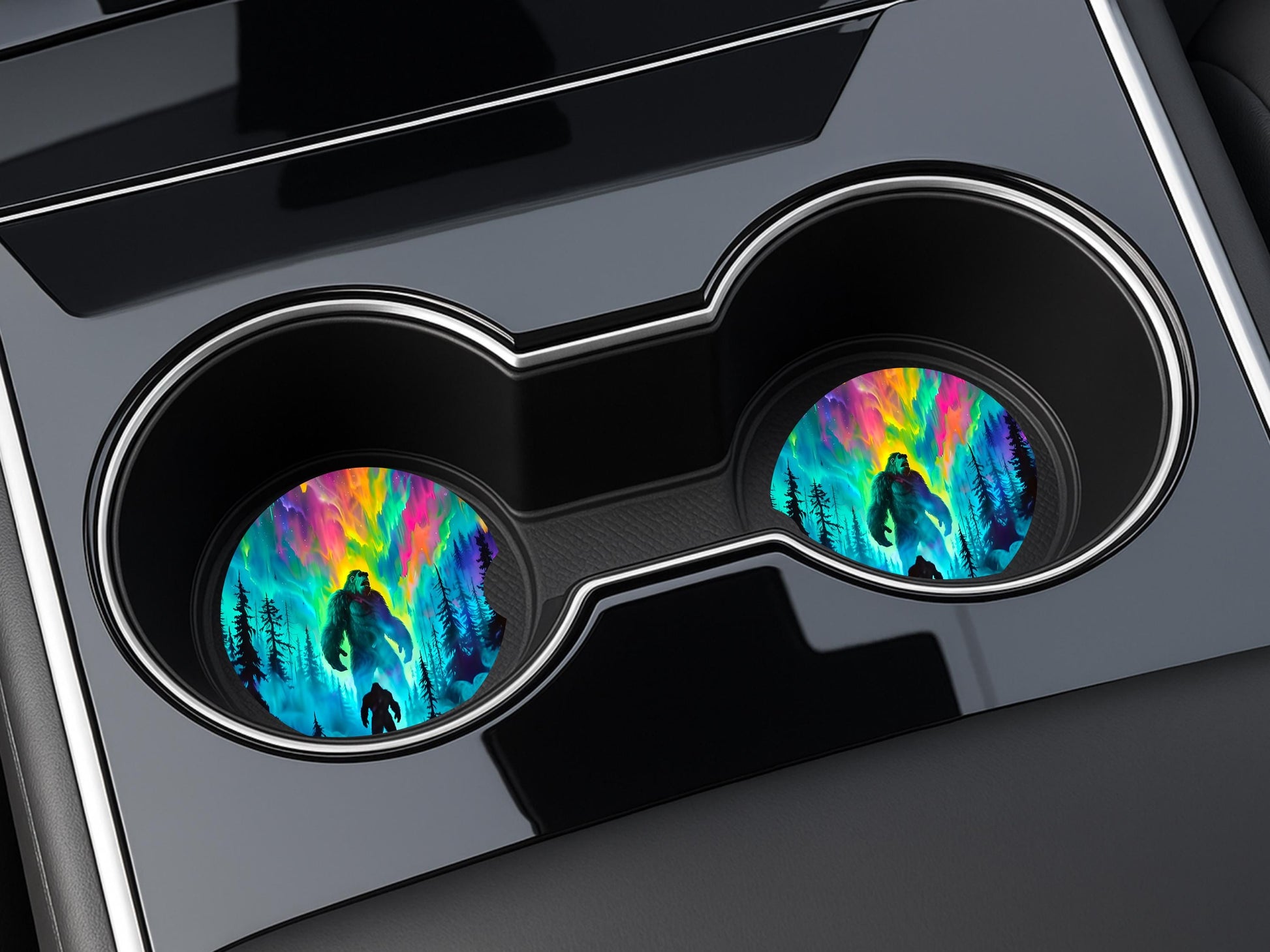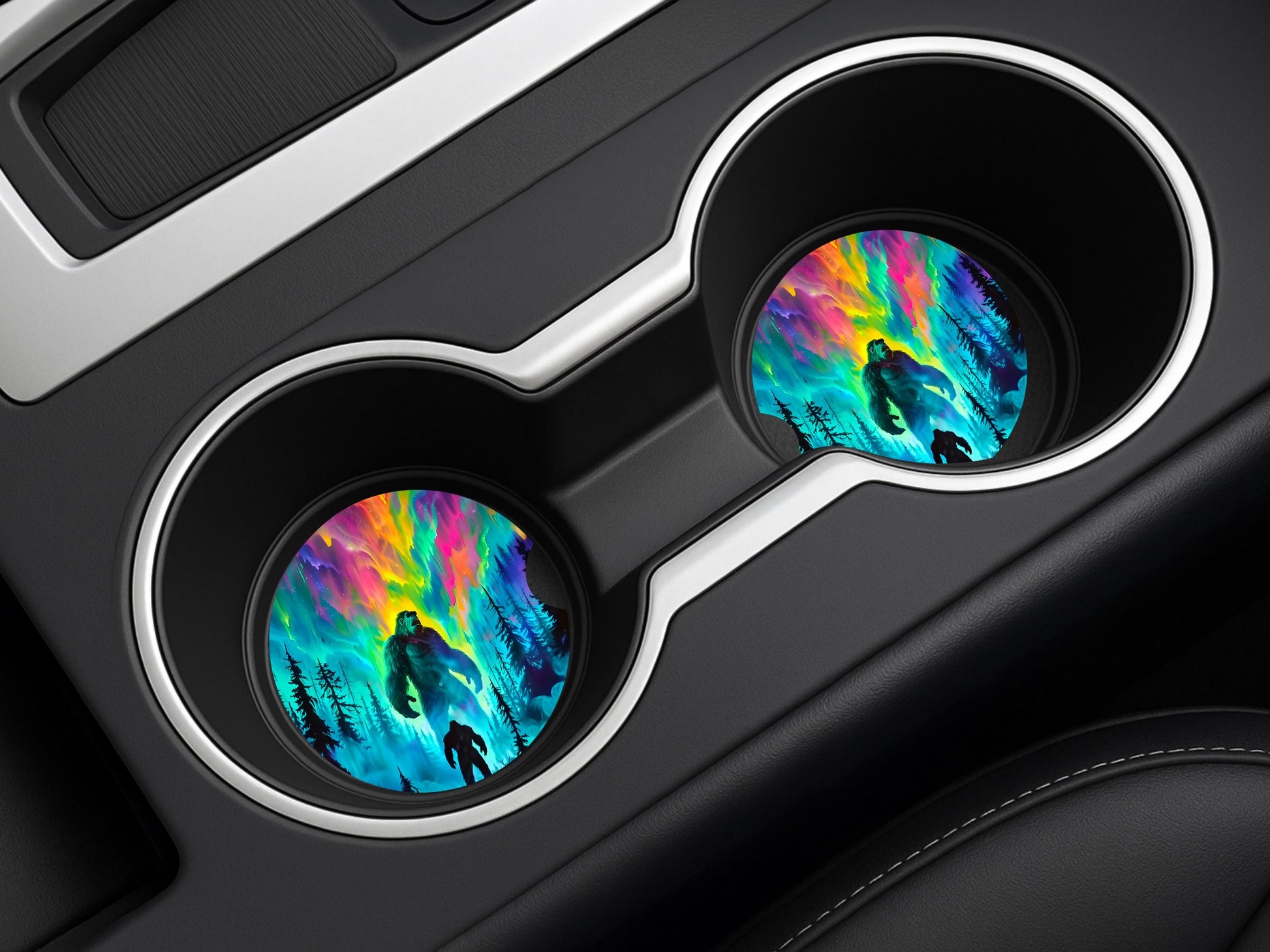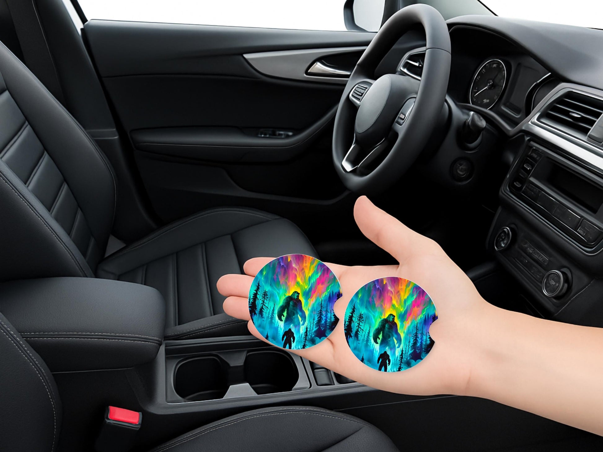 Add a touch of mystique to your car with our Ceramic Car Coaster, featuring a stunning northern lights forest scene with a playful Bigfoot peeking through the trees. Available as a single coaster or set of two, these coasters will keep your cup holders looking stylish while protecting them from drips and spills. Handcrafted with care, these coasters make a unique gift for any nature lover or cryptid enthusiast. Order yours today and bring a touch of magic to your daily drive!